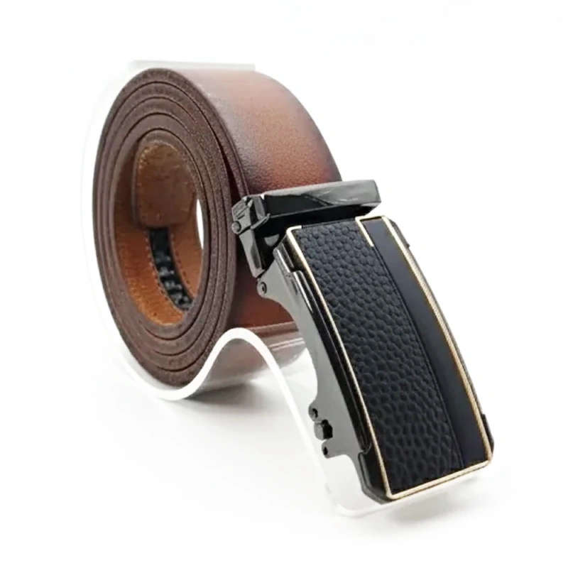 چرم طبیعی گاوی استفادهشده در این کمربند، استحکام و انعطافپذیری بالایی دارد. این چرم با فرآیند دباغی پیشرفته تولید شده و در برابر سایش مقاوم است. بافت لطیف آن حس لوکسی را منتقل میکند. با گذر زمان، چرم زیباتر شده و جلوهای طبیعیتر مییابد. این ویژگی، کمربند را به محصولی بادوام تبدیل کرده است.