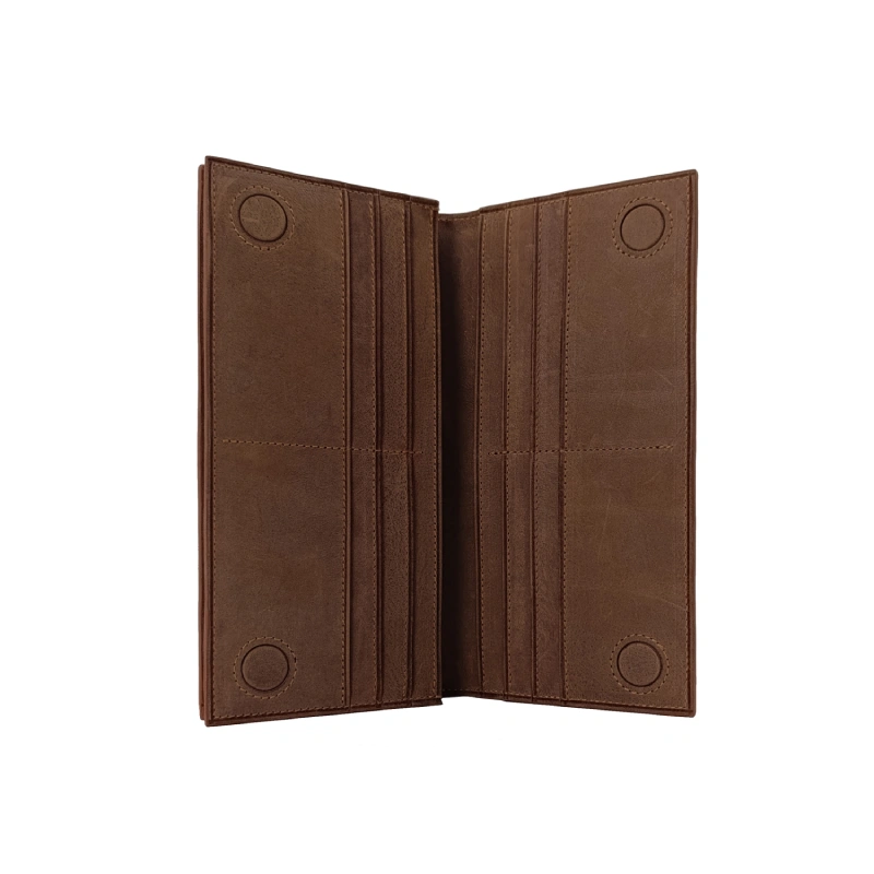 کیف پول مردانه A4003 با طراحی داخلی هوشمند، فضای کافی برای تمام نیازهای شما فراهم می‌کند. این کیف کتی شامل ۱۲ محفظه کارت بانکی با عمق مناسب، ۱ محفظه بزرگ اسکناس و مدارک، ۱ محفظه اختصاصی گوشی موبایل (مناسب برای گوشی‌های تا ۶.۵ اینچ) و ۱ محفظه زیپ‌دار داخلی برای سکه، کلید یا اشیاء کوچک است. هر جیب کارت با کشش مناسب برای دسترسی سریع طراحی شده و محفظه اسکناس فضای تخت و جاداری برای اسکناس‌های صاف و مدارک مهم ارائه می‌دهد.