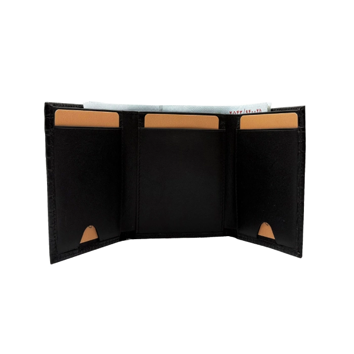 • محفظه اسکناس: یک جیب سراسری و عمیق برای قرار دادن اسکناس‌ها طراحی شده است. ابعاد این بخش به گونه‌ای است که اسکناس‌ها نیاز به تاشدن اضافی ندارند و کاملاً تخت درون کیف قرار می‌گیرند.