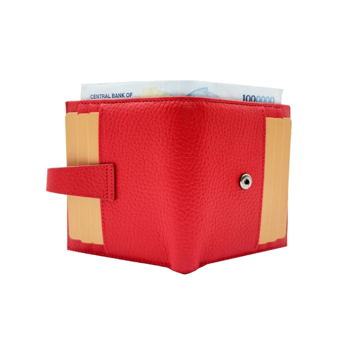 کنترل حجم: وقتی کیف پر از کارت و پول است، تمایل دارد به صورت نیمهباز بماند. این بند دکمهای کیف را کاملاً چفت کرده و از دفورمه شدن آن در جیب جلوگیری میکند.